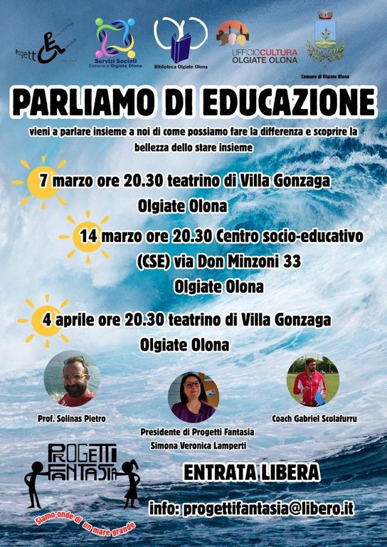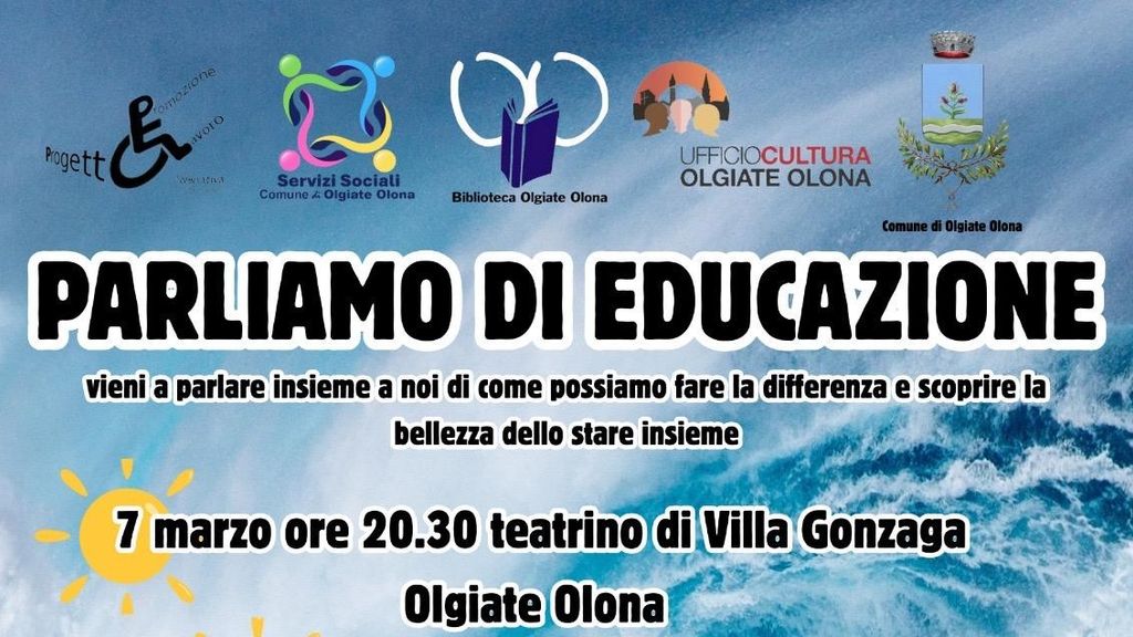 Prenderà il via venerdì 7 marzo il ciclo di incontri “Parliamo di educazione”, organizzato dall’amministrazione olgiatese in collaborazione con la cooperativa Progetto Promozione Lavoro e l’associazione Progetti Fantasia, per “parlare di come fare la differenza e scoprire la bellezza dello stare insieme”.