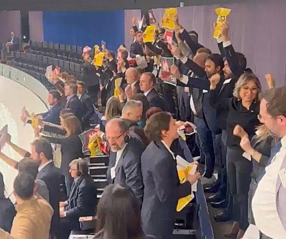 Deputati, senatori ed europarlamentari del M5S, guidati dal presidente Giuseppe Conte, hanno manifestato oggi davanti al Parlamento europeo di Strasburgo con uno striscione emblematico: «Basta soldi alle armi». «Una protesta simbolica ma necessaria per dare voce a tutti quei cittadini che chiedono investimenti sulle reali emergenze del Paese: sanità, istruzione, welfare e sostegno alle imprese».