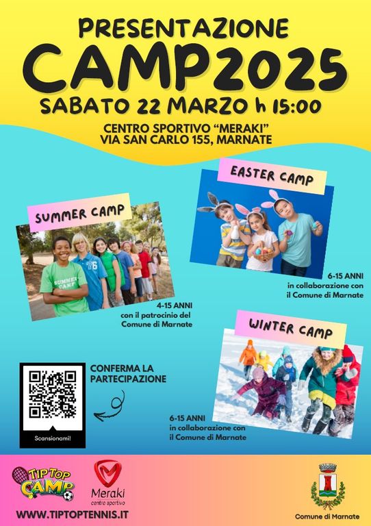 L’amministrazione marnatese ha deciso di continuare a supportare le famiglie del territorio anche nel corso del 2025, organizzando una serie di “Camp” destinati ad ospitare bambini e ragazzi durante le chiusure scolastiche.