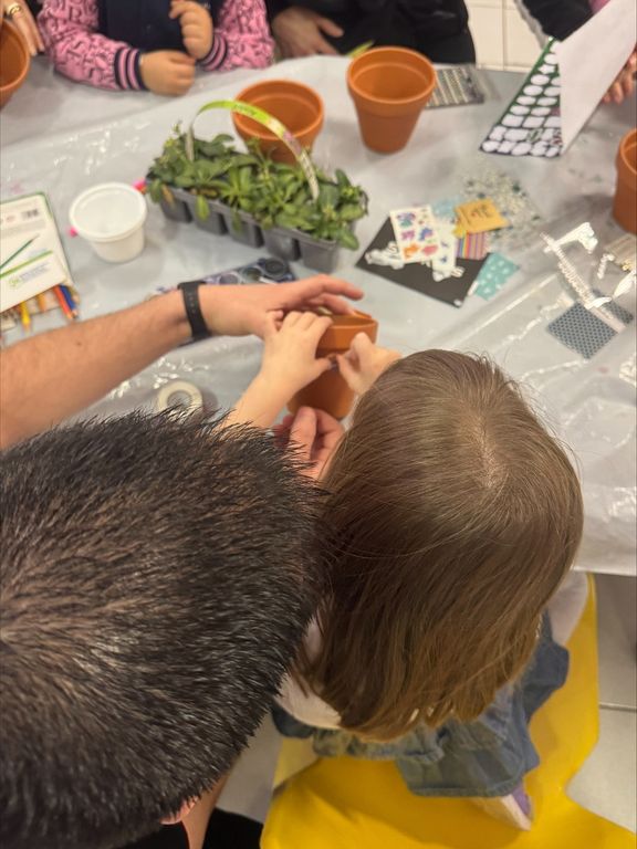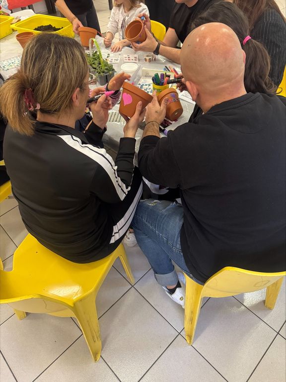 Nel pomeriggio, con il supporto di Cinzia, volontaria della "Casa del Giocattolo Solidale" da anni attiva nell'istituto, i bambini e i loro papà hanno decorato un vasetto di ceramica, per poi piantare un germoglio fiorito. Questa attività simboleggia il principio di cura delle relazioni, sostenendo l’idea che l’attenzione e l’affetto possano persistere nonostante la separazione fisica. L’incontro si è concluso con una merenda condivisa e chiacchiere in famiglia, ricordando che i legami si coltivano nei momenti semplici e nei gesti quotidiani.