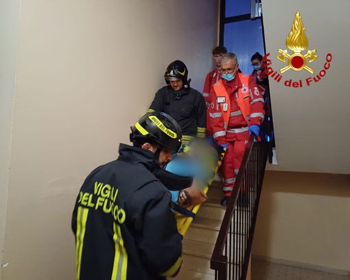 La donna ha riportato una frattura e non era in grado di aprire la porta. Gli operatori, passando da un balcone vicino all’appartamento al quarto piano di un palazzo, sono riusciti a forzare una finestra e ad accedervi