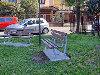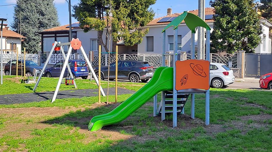 La riqualificazione ha incluso anche il rinnovamento completo delle strutture dedicate alla socialità e al gioco. Le quattro panchine in legno, ormai ammalorate, sono state sostituite con nuovi elementi sempre in legno. L'area gioco è stata arricchita con un nuovo scivolo, mentre la pavimentazione antitrauma dell'altalena preesistente è stata completamente rifatta.