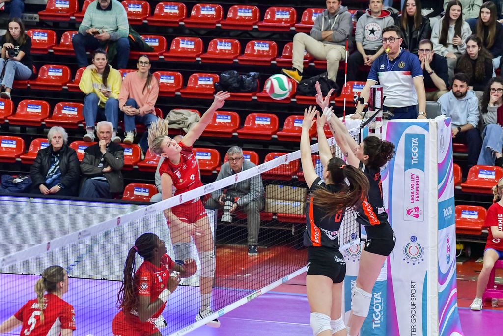 Prestazione solida e di gran carattere quella offerta dalla Futura Volley, che ha dato vita ad una sfida appassionate mostrando fiducia, serenità e tanta cattiveria agonistica. MVP della gara è una Sofia Rebora immensa, che ha trascinato con la sua grinta la squadra e messo a tabellino 15 punti col 52% in attacco, 3 ace e 3 muri. In doppia cifra anche Zanette (22 punti col 39%) e Enneking con 13. Nomination d’obbligo per Giada Cecchetto, ottima in difesa e solida in ricezione (47% di perfetta).