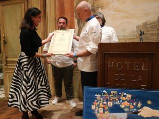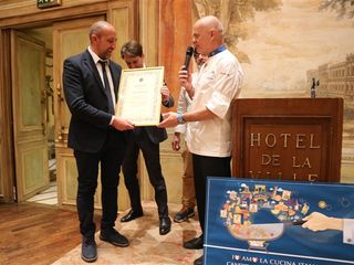 La Cena di Gala che si è tenuta nell'elegante Salone Reale dell'Hotel De La Ville ha regalato un'esperienza memorabile, all'insegna della raffinatezza e dell'autentica tradizione gastronomica. Il menu, presentato dal presidente di Euro Toques Enrico Derflingher, insieme al direttivo e alla famiglia Nardi, è stato elaborato con maestria dagli chef Gianni Tarabini, Giuseppe Mancino, Fabio Silva, Chicco e Bobo Cerea. Durante la cena, che ha avuto come ospite d'onore Barbara Mazzali assessore Regionale Lombardia, sono stati premiati i produttori che hanno sostenuto le attività dell’associazione.