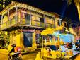 Abbiamo raggiunto il nostro piccolo appartamento, semplice ma accogliente, sistemato i bagagli in fretta e siamo usciti subito in strada, spinti dalla voglia di respirare la città, di sentirla addosso, anche solo per qualche ora. La temperatura era alta, l’umidità avvolgente, l’aria vibrava di voci, profumi e suoni. Cartagena ci ha accolto così: viva, calda, autentica. Ci siamo lasciati guidare dall’istinto, camminando senza meta tra le strade illuminate da lampioni fiacchi e insegne al neon. Abbiamo assaggiato il cibo di strada: arepas de queso bollenti e spiedini di carne cucinati su piccoli barbecue montati sul marciapiede. Il tutto accompagnato da una birra gelata comprata da un carretto ambulante. Non era una cena programmata, ma è stata una delle più gustose e autentiche del viaggio.