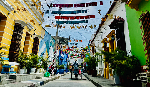 Ma è nel quartiere Getsemaní dove ho lasciato il cuore. Ci siamo persi tra i murales colorati, veri capolavori a cielo aperto: volti afro-colombiani, simboli astratti e poesie urbane. Abbiamo camminato tra fili elettrici aggrovigliati, bambini che giocavano a pallone, anziani seduti sulle soglie di casa. Le porte aperte lasciavano intravedere vite semplici: televisioni accese, profumi di cucina, ventilatori che giravano lenti. Di sera, Plaza de la Trinidad si trasformava in un luogo speciale: spettacoli improvvisati, acrobazie, jam session di strada. Brindare con gli sconosciuti, seduti sui marciapiedi, ed ascoltare freestyle in spagnolo è stato unico! Il quartiere non mi è sembrato troppo turistico, così da conservare ancora un’autentica vita quotidiana. E ogni volta che ci siamo tornati, abbiamo trovato qui la Cartagena più vera. In centro, invece, alla sera la città cambiava volto: locali vibranti, bar con musica dal vivo, terrazze con DJ e tanta gente a passeggio per strada.