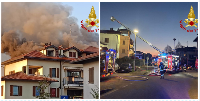 FOTO. Edificio di tre piani in fiamme a Cardano al Campo. Intervengono i vigili del fuoco