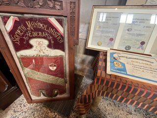 Come il primo concorso, 1906, Como. Alberto Tovaglieri, leader dei Mandolinisti Bustesi, guida i visitatori tra cimeli e mostra a colpo sicuro l'attestato. Quanti premi, foto d'epoca e altri pezzi storici tracciano un invito a Busto: quello a seguire la musica dei Mandolinisti Bustesi, ma anche la propria storia così intrecciata alle tappe della formazione musicale.