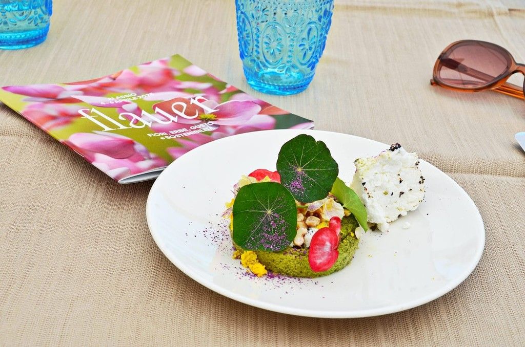 Si possono raccontare luoghi, natura e persone anche solo preparando piatti che raccontino veramente le loro storie. Questa è stata un’occasione per assaggiare due piatti pieni di vita che parlano di Sicilia sudorientale, di Lago Maggiore e di Liguria. Entrambi gli chef stellati hanno infatti portato sulle tavole della terrazza con vista sulla spiaggia alassina due loro straordinarie creazioni, interpretazioni personali dell’utilizzo di erbe e fiori di Ravera Bio di Albenga.