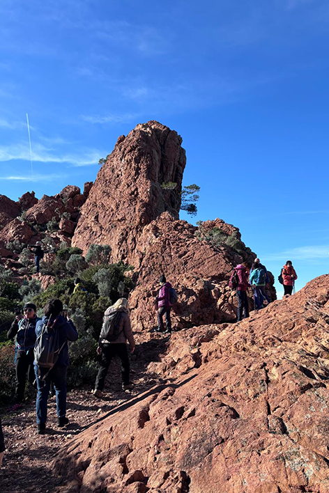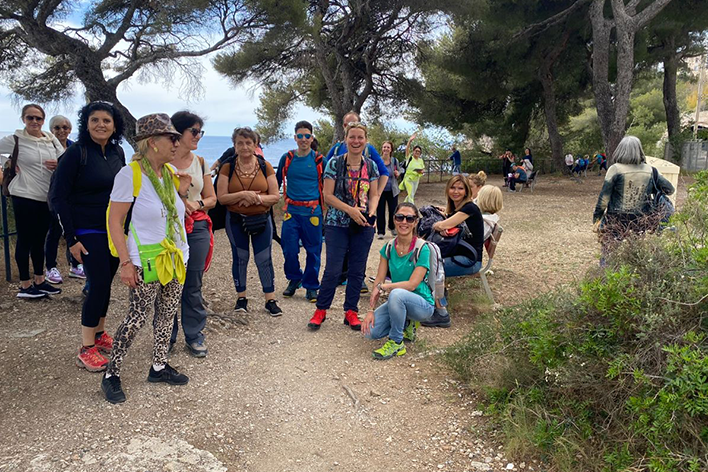 Il Sentiero dei Doganieri, noto anche come Promenade Le Corbusier, è un percorso costiero che collega Mentone a Monte Carlo, attraversando paesaggi mozzafiato della Costa Azzurra. Il sentiero si snoda per circa 14 km, con un dislivello di soli 90 metri, quindi accessibile a molti escursionisti. Ho scelto di organizzare questa uscita utilizzando un pullman per il trasferimento: una decisione che ha portato diversi vantaggi. Dal punto di vista ambientale, ha ridotto l’uso di auto private; dal punto di vista umano, ha trasformato anche il tragitto in un momento prezioso. All’andata le persone hanno iniziato a conoscersi, al ritorno si sono scambiano le impressioni personali. Questo ha creato un senso di comunità e arricchito l’esperienza.