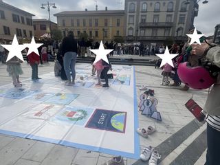 Uno spettacolo nello spettacolo: piazza Santa Maria che si affolla di volti e colori e la prima carta irresistibile è rappresentata dai più piccoli che si appassionano all'ambiente e quindi al futuro.