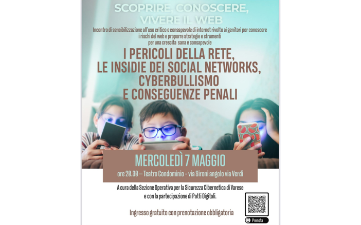 Un’occasione importante per riflettere sull’educazione digitale e sulla tutela dei più giovani nell’era di Internet: si terrà mercoledì 7 maggio alle ore 20.30, al Teatro Condominio di Gallarate, l’evento "Scoprire, conoscere, vivere il web", incontro di sensibilizzazione all’uso critico e consapevole del web rivolto in particolare ai genitori.