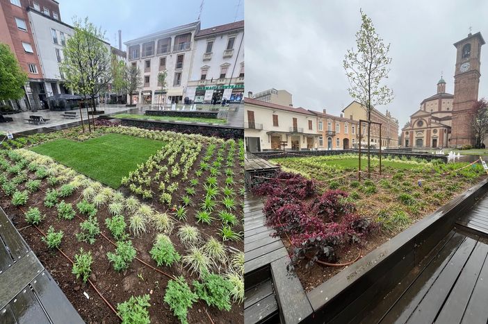 Prosegue la riqualificazione del verde in piazza San Magno: dopo la messa a dimora, lo scorso mese di febbraio, di quattro Liriodendron (o alberi dei tulipani), si stanno rinnovando anche le aiuole della piastra, un intervento dettato dal deperimento delle vecchie fioriture e, quindi, dalla necessità di una nuova piantagione floreale. Seguendo un design a motivi geometrici, si stanno mettendo a dimora specie perenni con fioritura “a scalare” durante la primavera e l’estate di lavanda orientale, hemerocallis “ Sole d’oro”, loropetalo, iperico, liriope. Oltre ad assicurare un periodo di fioriture prolungato la piastra, con le nuove specie, offrirà anche una gradevole alternanza di colorazione di giallo, azzurro, violaceo, lillà e varie tonalità di verde ed amaranto delle foglie che contribuirà a valorizzare un punto della piazza, quello delle sedute, con un “arredo” floreale all’altezza.