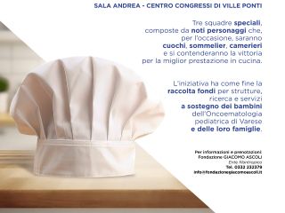 La cena benefica promossa da Fondazione Giacomo Ascoli si svolgerà nel Salone Andrea di Ville Ponti a Varese, nella serata di lunedì 12 maggio alle ore 19.30. Lo scopo è raccogliere fondi per finanziare strutture, ricerca e servizi a sostegno dei bambini dell’Oncoematologia pediatrica di Varese e delle loro famiglie.