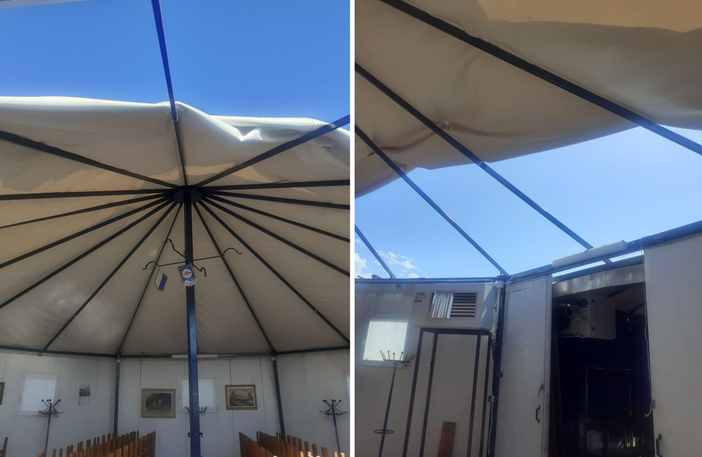 Il forte vento ha causato anche il parziale scoperchiamento del tendone del Cas Sacconago (nella foto), un’area utilizzata per i momenti conviviali della società sinaghina.
