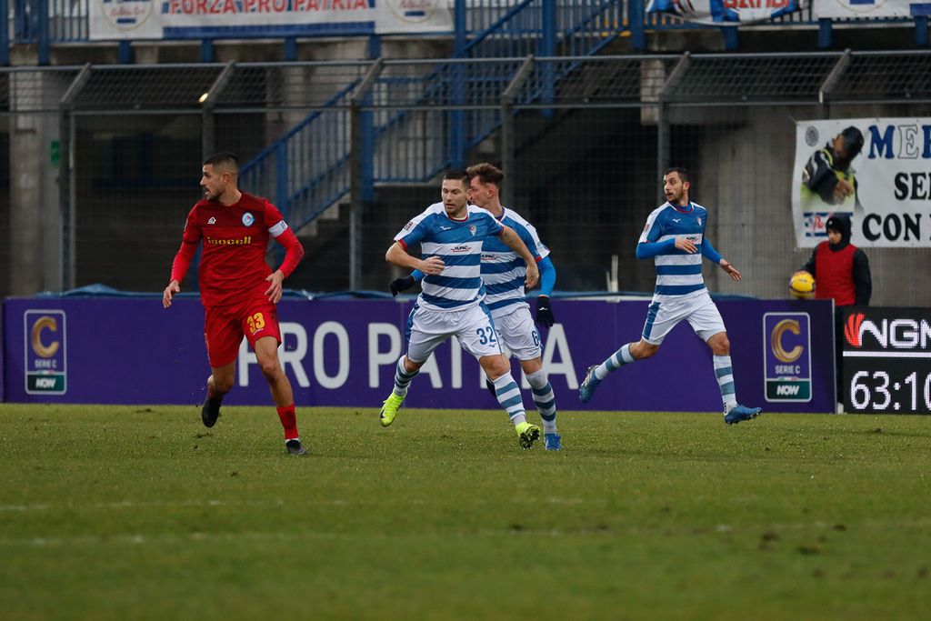 Pro Patria (3-4-2-1): Rovida; Reggiori, Alcibiade, Renault; Piran (23′ st Citterio), Palazzi (29′ st Cavalli), Mallamo (23′ st Nicco), Vaglica; Terrani, Rocco (1′ st Curatolo); Beretta. A disposizione: Pratelli, Bongini, Bashi, Marra, Miculi, Somma. Allenatore: Caniato.