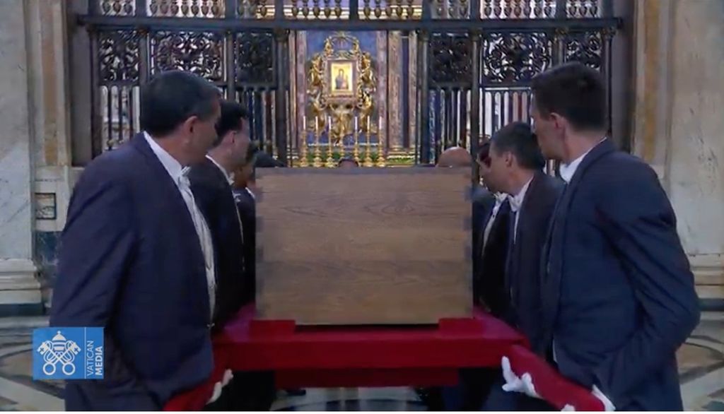 Dopo la liturgia, la salma del pontefice verrà tumulata nella Basilica di Santa Maria Maggiore, in una cerimonia che resterà privata: la salma di Francesco raggiungerà Santa Maria Maggiore su una papa-mobile utilizzata durante un viaggio pastorale in Asia qualche anno fa, attraversando le vie di Roma.