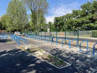 È stato completamente riqualificato anche il parcheggio di biciclette e moto. L’area, un tempo poco curata, ora è recintata e sicura: archetti blu per le bici, colonnine di ricarica elettrica gratuita e cancelli sempre chiusi. L’area moto, quella più vicina a via Ferrini, è stata risistemata per offrire ordine e uno spazio adeguato ai mezzi a due ruote.