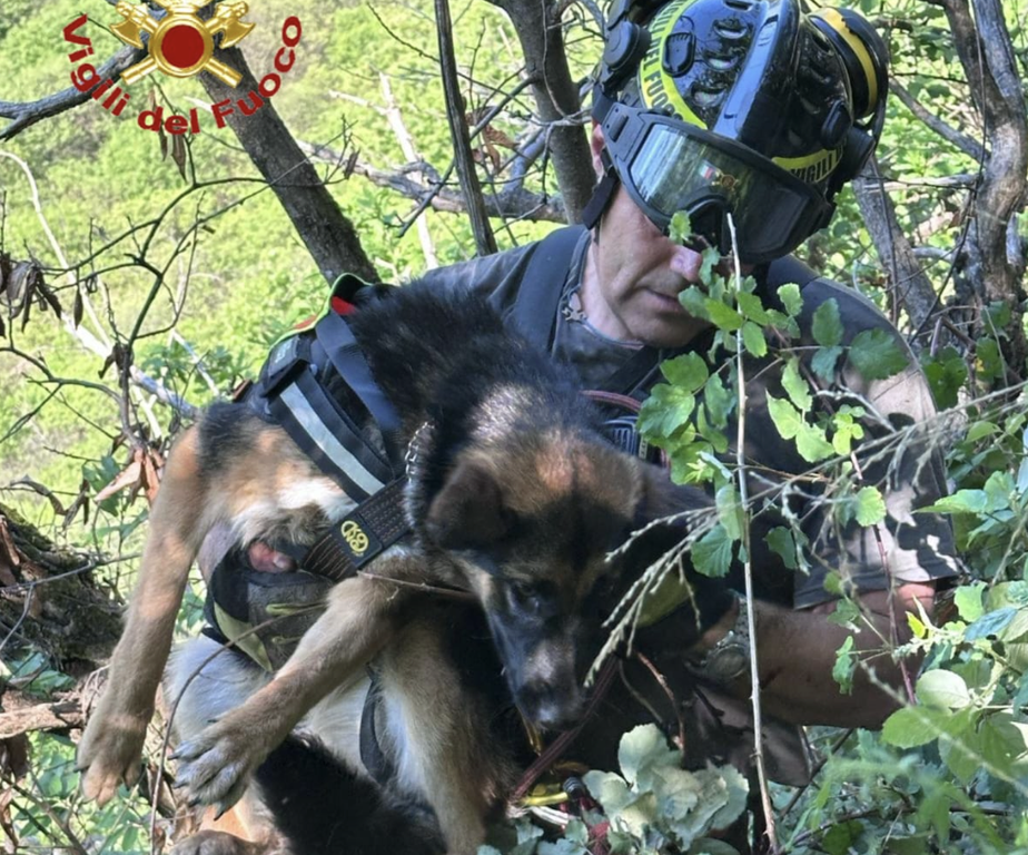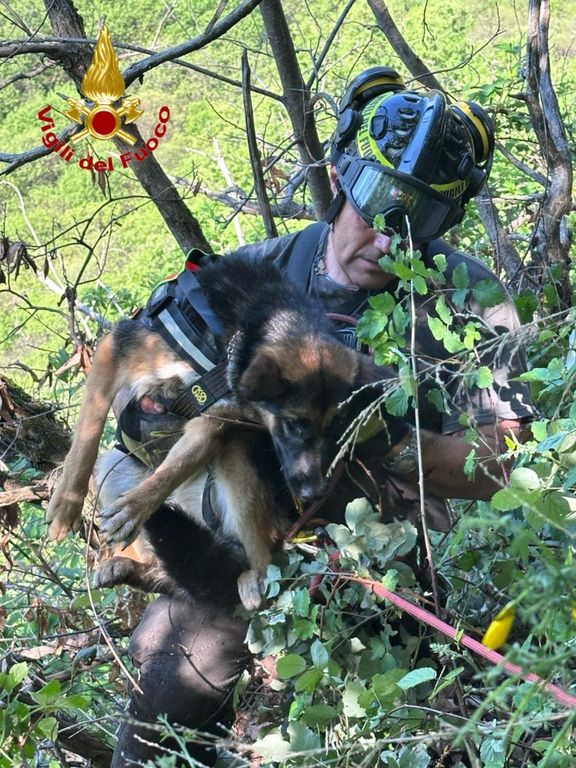 Non essendoci altri modi per portare in salvo l'animale è stato dato l'allarme. Sul posto è intervenuta così una squadra dei vigili del fuoco: attraverso manovre di lavoro su corda gli operatori sono riusciti a salvare il cane e consegnarlo ai proprietari