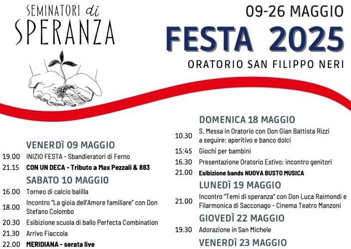 C’è un tempo speciale, tra la primavera e l’estate, in cui l’oratorio San Filippo Neri di Busto Arsizio si trasforma in un luogo ancora più vivo e pulsante del solito: è il tempo della sua grande festa, che quest’anno, dal 9 al 26 maggio, prende il nome di “Seminatori di speranza”. Un titolo che è molto più di uno slogan: è un invito concreto a diventare luce nella vita degli altri, a portare gioia, vicinanza e fiducia ovunque, nella quotidianità e nei legami.