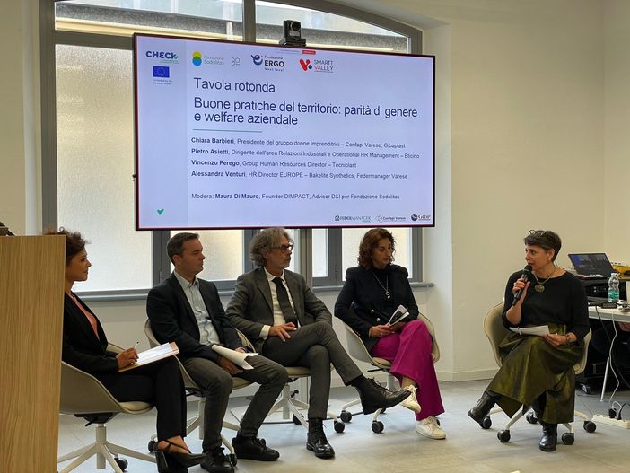 Alla tavola rotonda, moderata da Maura Di Mauro, Founder DIMPACT e Advisor D&I per Fondazione Sodalitas, hanno partecipato Chiara Barbieri, Presidente del gruppo donne imprenditrici di Confapi Varese e Responsabile Amministrativa di Gibaplast, Pietro Asietti, Dirigente dell’area Relazioni Industriali e Operational HR Management di BTicino, Vincenzo Perego, Group Human Resources Director di Tecniplast, Alessandra Venturi, HR Director EUROPE di Bakelite Synthetics, Federmanager Varese.