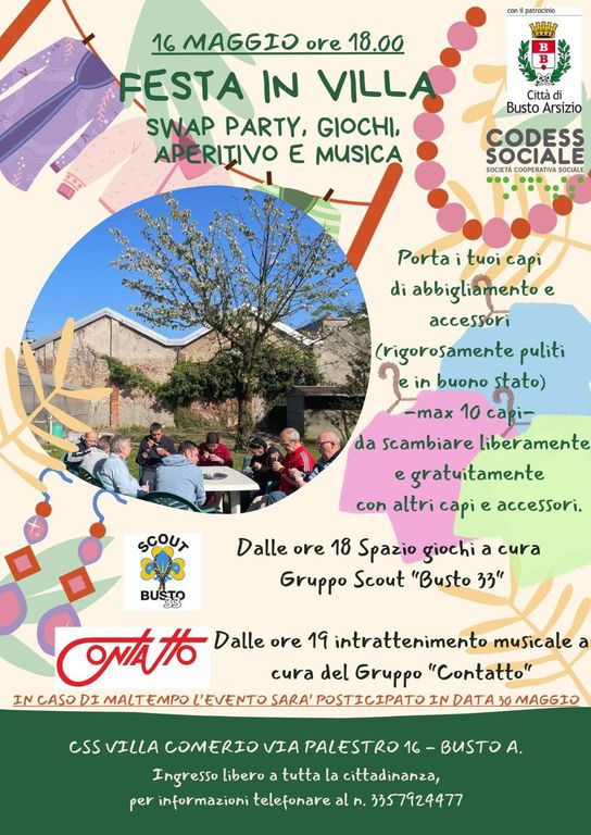 La CSS "Villa Comerio" invita tutti i cittadini di Busto Arsizio a partecipare a questa serata di festa e condivisione, un'occasione per rafforzare il senso di comunità e promuovere uno stile di vita sostenibile. Un evento da non perdere, per trascorrere una piacevole serata in compagnia, tra musica, giochi e scambi.