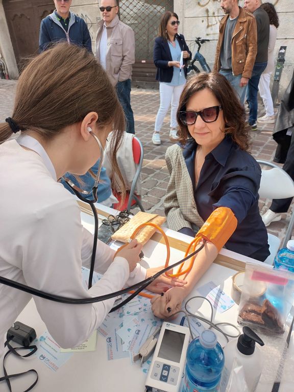 Alla vigilia della Giornata internazionale dell’infermiere, Ordine delle Professioni Infermieristiche in via Milano con gli studenti dell’Università dell’Insubria per offrire ai passanti la rilevazione dei parametri vitali. A poca distanza, gazebo del Centro Salute Argentum Raimondi e dell’associazione Adiuvare con misurazione della glicemia e informazioni sul diabete. Elena Braida (Opi): «Per i cittadini gli infermieri ci sono sempre»