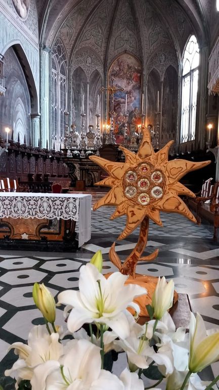 Accompagnata da una delegazione di penne nere olgiatesi, infatti, la Stella che contiene le reliquie dei principali santi e beati legati al mondo alpino è stata esposta, insieme al Labaro Nazionale degli Alpini, sull’altare durante la Santa Messa Solenne celebrata dal vescovo di Biella, monsignor Roberto Farinella.
