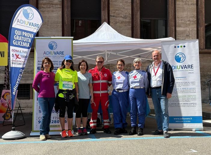 Nel weekend, all'interno dell'edizione 2025 di EcoRun Varese, grazie ad Adiuvare ODV - charity partner dell'evento - e alla disponibilità del Corpo delle Infermiere Volontarie dell’Ispettorato Varese C.R.I. – Ispettorato di Varese, sono stati eseguiti circa 350 test della glicemia prima e dopo la gara podistica (nella foto principale, il gazebo predisposto per l'attività), per monitorare le variazioni di questo parametro in risposta all’attività fisica. Una cinquantina di persone del gruppo Adiuvare, inoltre, ha partecipato alle gare EcoRun, la 5 km e la 10 km, a sostegno dell'associazione. Senza dimenticare un bello scatto di gruppo (foto in basso), a testimonianza di un gruppo coeso le cui attività proseguono con impegno e dedizione.