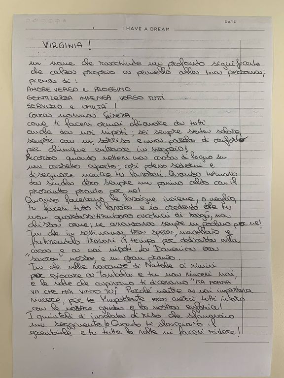Ma non solo. Ginetta non vuol far mancare l'affetto nei giorni speciali e così, su una agenda, si annota tutti i compleanni, gli onomastici, finanche le date delle nozze. E così, ogni giorno, telefona a chi ha motivo di festeggiare per porgere i suoi auguri.
