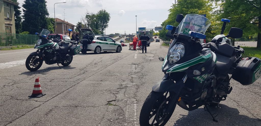 L'episodio verso le 11.35 in direzione del centro abitato, arrivando da Gallarate. Il centauro non è grave, indagini della Polizia locale sulla dinamica