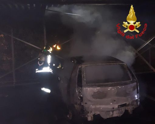 L'incendio è scoppiato intorno alle 3.40 in un parcheggio di via del Popolo. L'intervento dei vigili del fuoco ha scongiurato che le fiamme potessero propagarsi ad altri veicoli