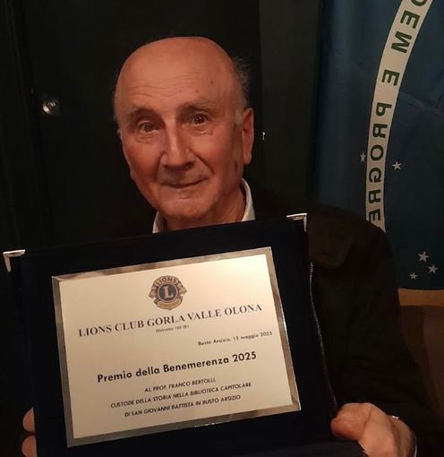 È un uomo d’altri tempi, il professor Franco Bertolli, capace di vivere la cultura come missione, la ricerca come vocazione e la memoria storica come un’eredità da custodire con cura e rispetto. Il Lions Club Gorla Valle Olona, in occasione del suo 60° anniversario, giovedì 15 maggio gli ha conferito il Premio della Benemerenza 2025, riconoscendo il valore di una vita dedicata ai libri antichi, ai manoscritti medievali e, soprattutto, alla Biblioteca Capitolare di San Giovanni Battista di Busto Arsizio.