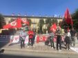 Hanno preso la parola esponenti di associazioni e partiti, presente anche l’Unione degli studenti. Oltre alle bandiere rosse, una nera appena a uno spartitraffico «gegen Nazis» e una della Palestina.