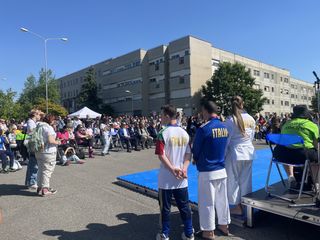Subito la parola a una campionessa paralimpica europea e mondiale di nuoto come Arianna Talamona,  ma poi ecco esibirsi in una prova altri campioni, questa volta di arti marziali, Roberta Dominici (solbiatese) e Mattia Allesina (bustocco): una sfida che ha unito combattimento e amicizia con il bellissimo abbraccio finale. Lo sport, quello vero. Foto di rito, con un altro campione, Patrick Buwalda.