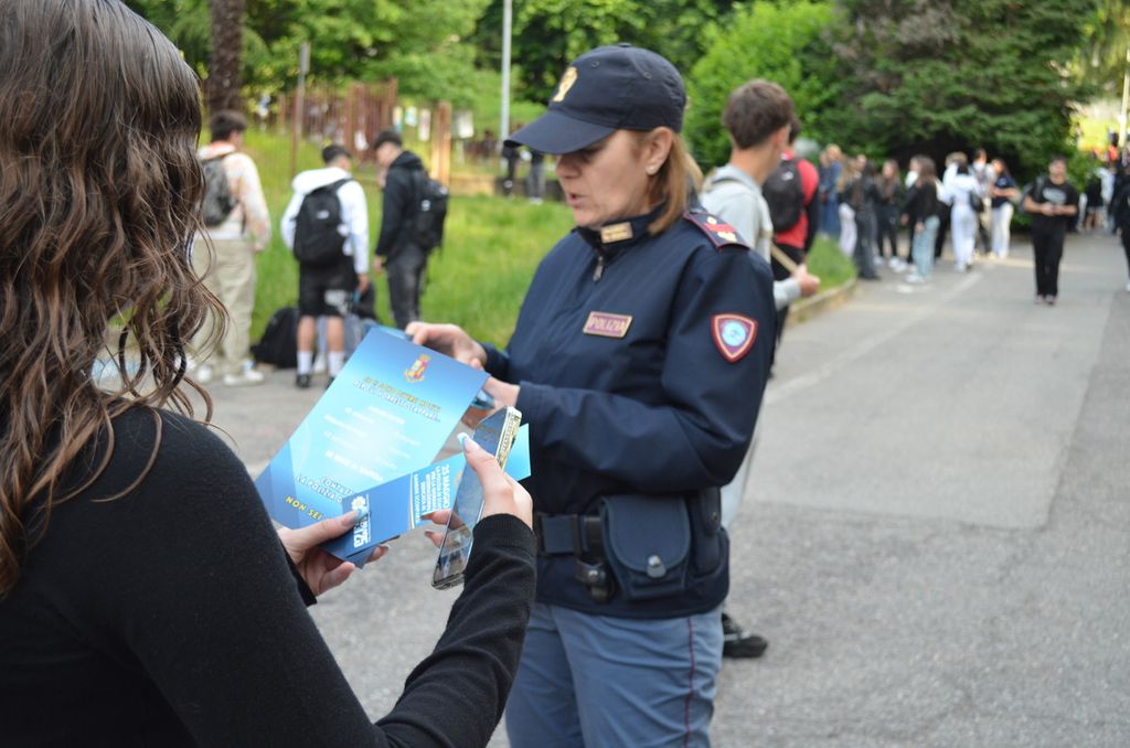 Gli agenti della Questura lo scorso 25 maggio hanno presenziato nella zona delle scuole, distribuendo dépliant informativi ai ragazzi