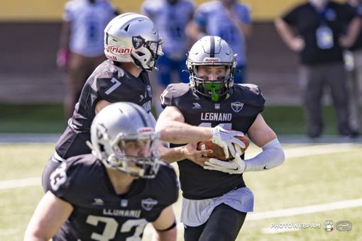 Il terzo quarto riparte subito con Kittner di nuovo in endzone a ricevere il pass di Zahradka. Un altro touchdown di Dayan Almeida Cabrera (#32) nell’ultimo periodo di gioco, entrambi con successive conversioni, porta a 35 il punteggio finale di Legnano.