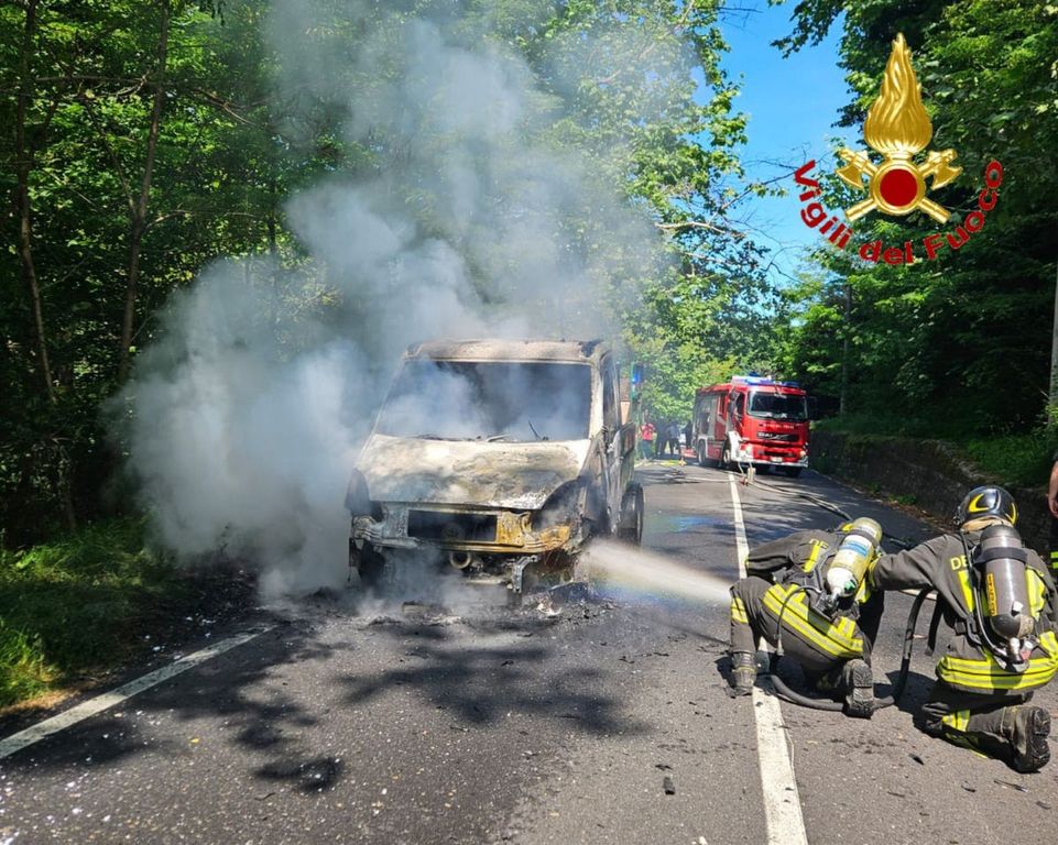 Incendio questa mattina intorno alle 10.45 sulla Strada Provinciale 23 nel comune di Montegrino Valtravaglia. I vigili del fuoco sono intervenuti con una squadra per spegnere le fiamme che hanno distrutto un furgone.