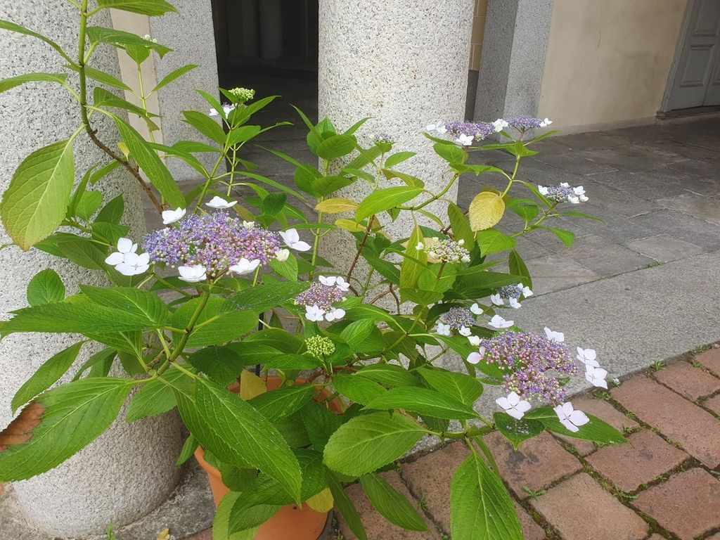 Tra le colonne ecco invece ortensie e gelsomini. Questi ultimi, in primavera, contribuiranno a rendere il porticato… profumato.