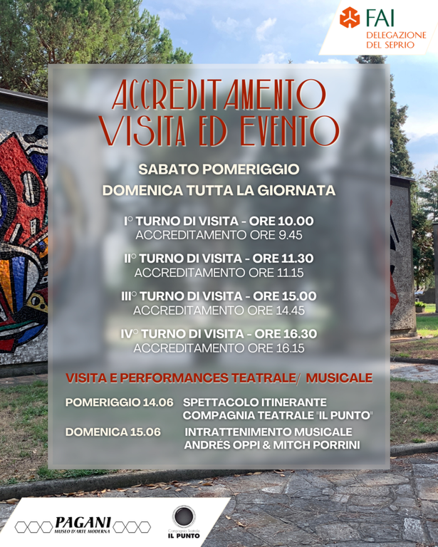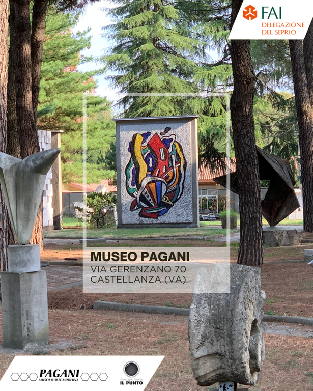 Questa volta la “cornice” scelta è quella del Museo d'Arte Moderna e Contemporanea Pagani, una realtà unica nel suo genere: circa 40.000 metri quadrati di parco, disseminati di oltre 650 opere tra sculture e mosaici realizzati in marmo, bronzo, acciaio, vetro, pietra. Un museo en plein air, come lo sognava il suo fondatore Enzo Pagani, che nel secondo dopoguerra immaginò “un corpo vivo che cresce con noi”, più che una classica collezione.