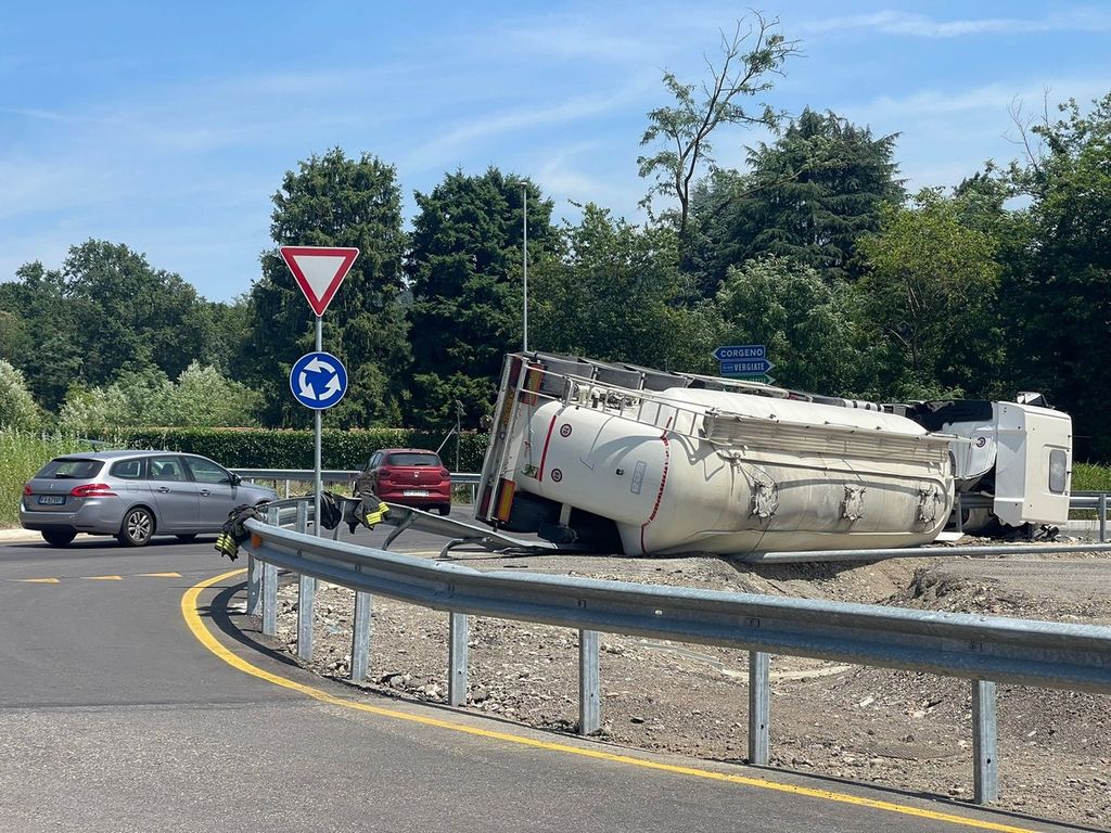 FOTO. Autocisterna si ribalta sulla superstrada Vergiate-Besozzo