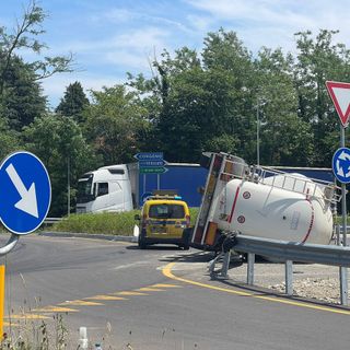FOTO. Autocisterna si ribalta sulla superstrada Vergiate-Besozzo