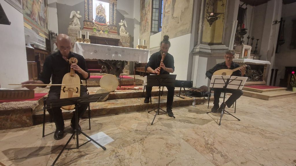 Questa sera in molti hanno voluto partecipare all’incontro dedicato alla preparazione dell’acqua di San Giovanni e al concerto di musica antica in corso nel santuario di Santa Maria. Questa preparazione è prevista alla vigilia della festa ed è stata curata dall'Erboristeria Montalto dopo il successo dell'anno scorso.