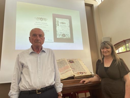 Protagonista dell’evento è Franco Bertolli, per tanti anni presidente della Capitolare, studioso appassionato e autore del nuovo volume “Busto Arsizio, lo stemma e il nome – A partire dagli antifonari della biblioteca capitolare”. Con lui al tavolo la giornalista e scrittrice Sara Magnoli, moderatrice dell’incontro. Presente Manuela Maffioli, assessore alla Cultura, che apre con emozione: «Ritrovo con piacere il professor Bertolli, il mio Virgilio otto anni fa all’inizio del mio mandato: fu lui a guidarmi nel cuore della Capitolare. Questo libro è un’operazione storica, filologica, identitaria: racconta Busto dall’interno, dal suo nucleo vitale. Ci fa sentire la nostra comunità, la nostra identità».