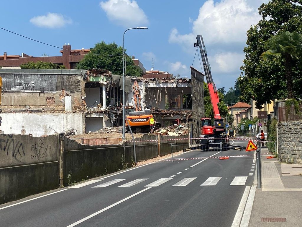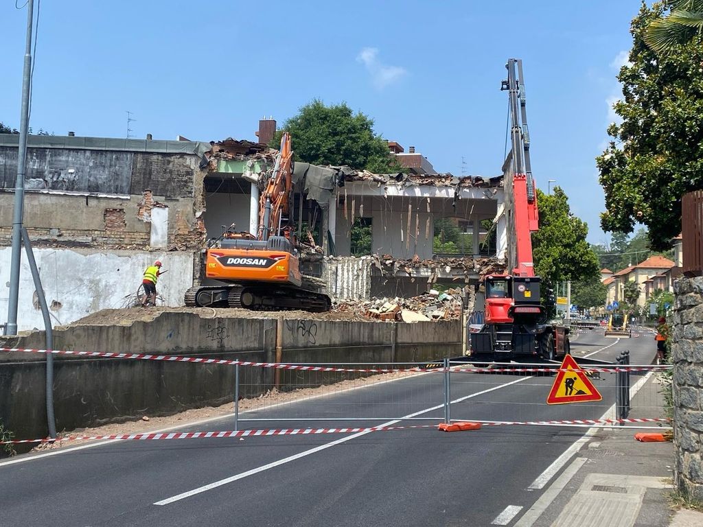Come vi avevamo raccontato ieri (leggi QUI), oggi i lavori di demolizione all'ex Aermacchi vivono un giorno cruciale che ha richiesto anche la chiusura di un tratto di via Crispi per permettere alle ruspe di demolire la parte di palazzina che ospitava gli ex uffici comunali affacciata su piazzale Foresio.