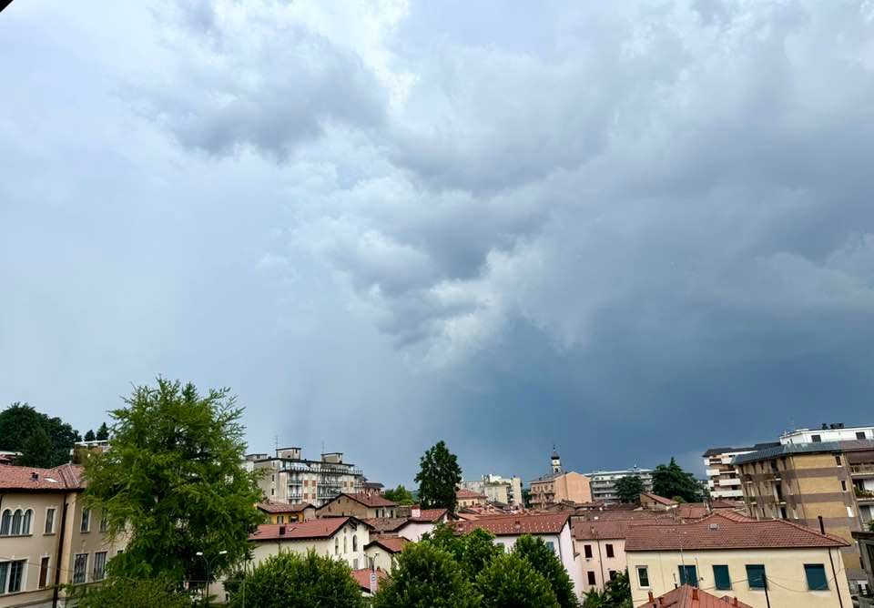 La foto da Varese dell'esperto meteo Gianluca Bertoni a metà pomeriggio di oggi, che spiega: «Grandine a sinistra nell'immagine»