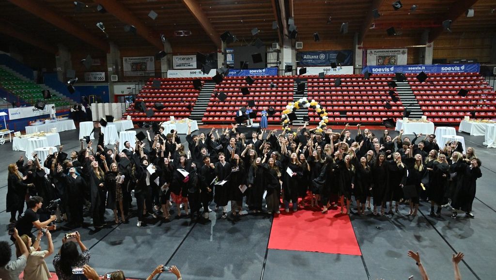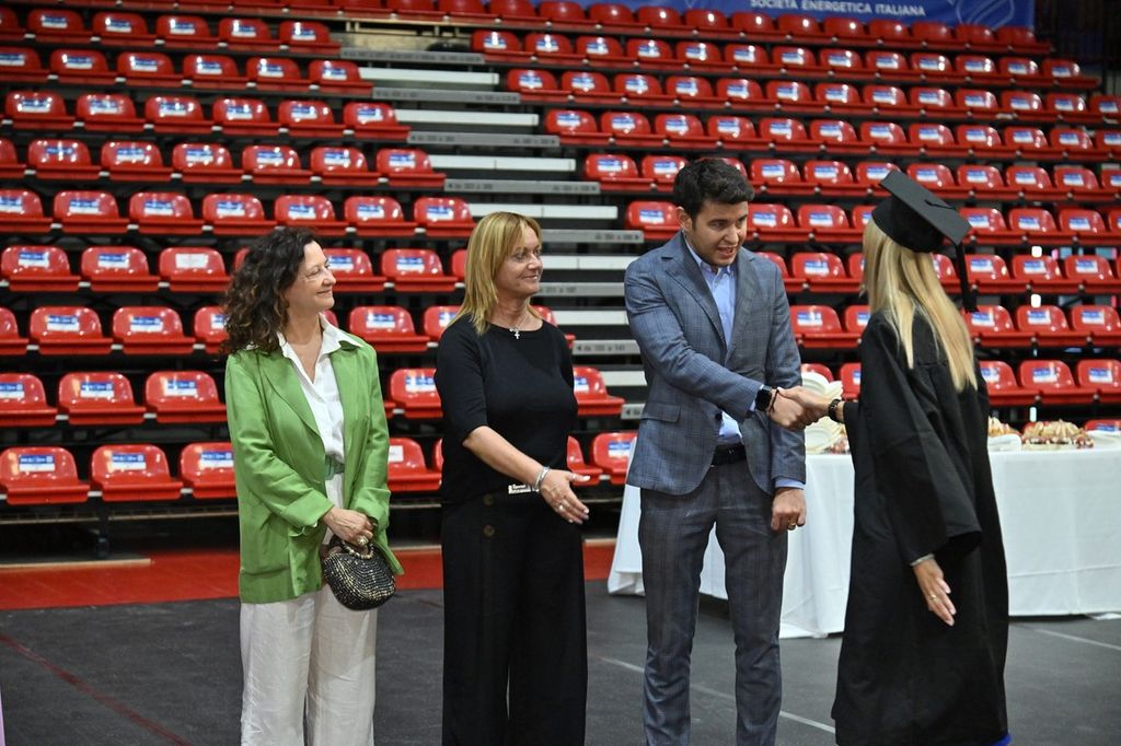 Una festa con 500 invitati, radunati al palazzetto dello sport di Castellanza, per rendere merito ai 180 ragazzi che hanno terminato con successo il ciclo di studi superiori nei diversi indirizzi degli Istituti scolastici Olga Fiorini e Marco Pantani, così come nei licei quadriennali di The International Academy. Una festa che ha visto protagonisti anche dirigenti, docenti e personale ATA.