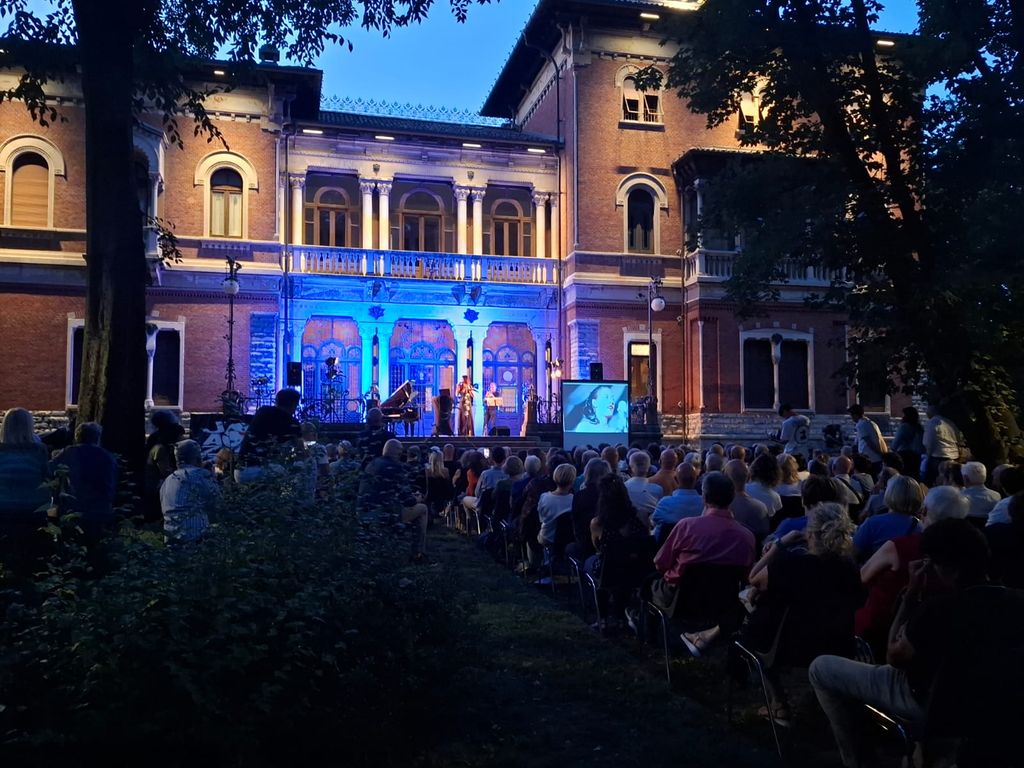 Sedie esaurite ieri sera nel parco di villa Ottolini-Tosi per il concerto di JAZZaltro, nell'ambito di BACultura per l'estate.