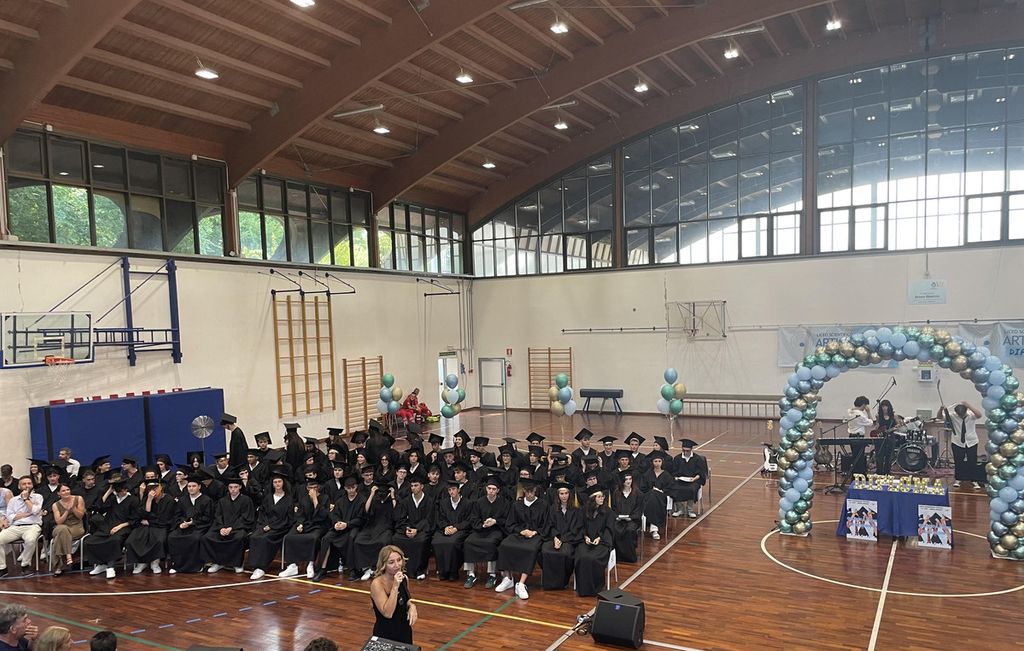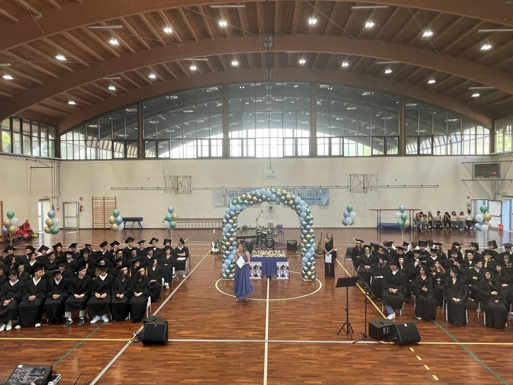 Le sedie occupate da genitori, amici, insegnanti, autorità. Il campo della palestra animato da 160 studenti in toga, chiamati uno a uno, accolti dagli applausi di 300 spettatori. Uno spettacolo orchestrato con cura, ritmo e sentimento. A guidare il flusso dell’emozione, l’attrice e presentatrice Laura Locatelli, voce narrante di un pomeriggio che resterà impresso nella memoria.