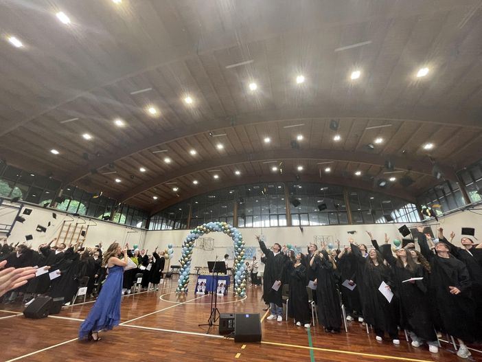 Le sedie occupate da genitori, amici, insegnanti, autorità. Il campo della palestra animato da 160 studenti in toga, chiamati uno a uno, accolti dagli applausi di 300 spettatori. Uno spettacolo orchestrato con cura, ritmo e sentimento. A guidare il flusso dell’emozione, l’attrice e presentatrice Laura Locatelli, voce narrante di un pomeriggio che resterà impresso nella memoria.